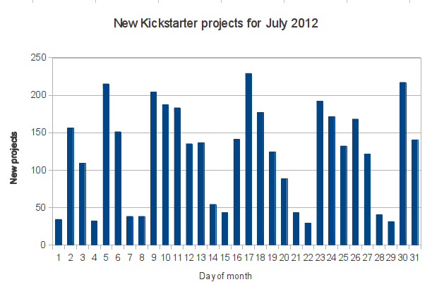 The article above got me thinking that there must be some more data on the number of Kickstarter projects that are launched over a course of a year and how it changes from month to month. I couldn’t find all that much information online related to the topic. Since Kickstarter was growing so much in the past few years, it’s also hard to spot trends from their own data.