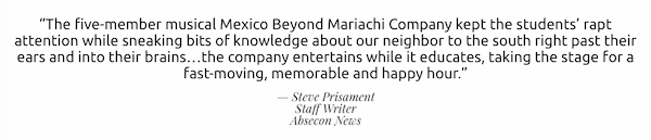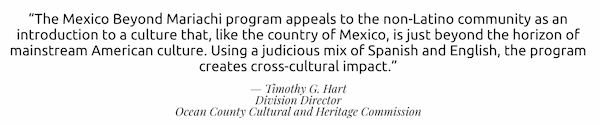 Mexico Beyond Mariachi has a 15 year history as one of the leading arts-in-education providers of regional Mexican music and dance in the NYC tri-state area, providing in school performances, residencies, workshops and more to approximately 50,000 school children each year.