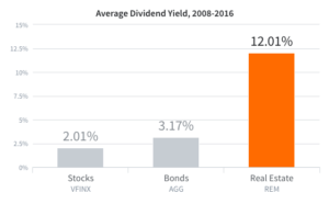Taken from 2008 – 2016, the average dividend yield was about 4x higher than from bonds and 6x from stocks.