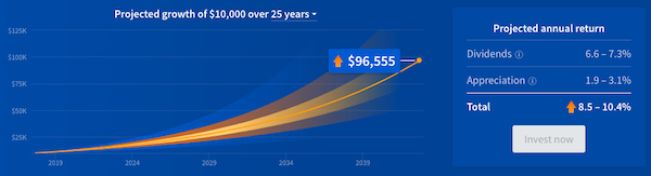Supplemental income aims at a 6.6-7.3% dividend return and a 1.9 – 3.1% appreciation in your investment for a total of a 8.5 – 10.4% return. Naturally, this plan is aimed at those individuals who want to receive cashflow on a quarterly basis.